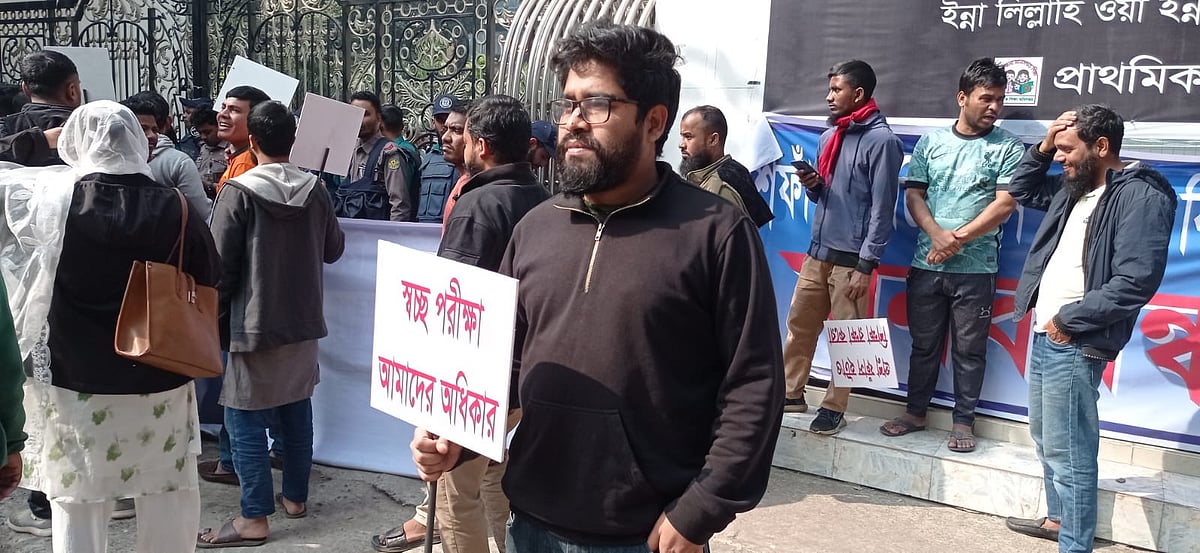 প্রাথমিক শিক্ষক নিয়োগ পরীক্ষায় অনিয়মের প্রতিবাদে ১১ জানুয়ারি মিরপুরের প্রাথমিক শিক্ষা অধিদপ্তরের সামনে বিক্ষোভ করেছেন চাকরিপ্রার্থীরা।