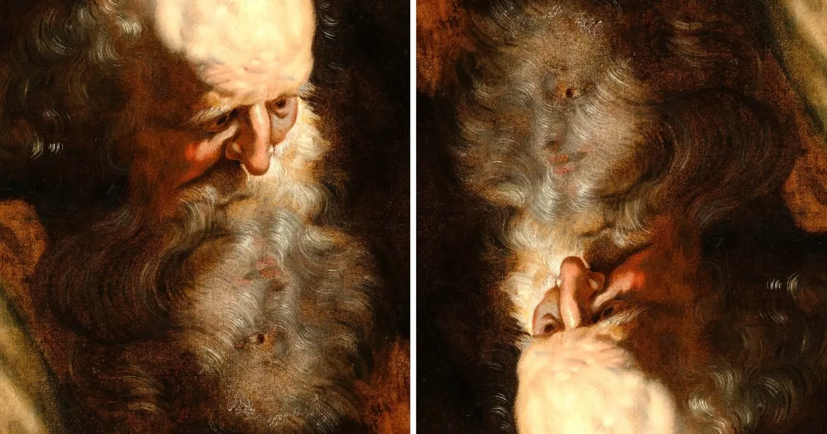 دراسة فنية حديثة تكشف عن لوحة مزدوجة لرجل عجوز يُخفي وجه امرأة في لحيته.