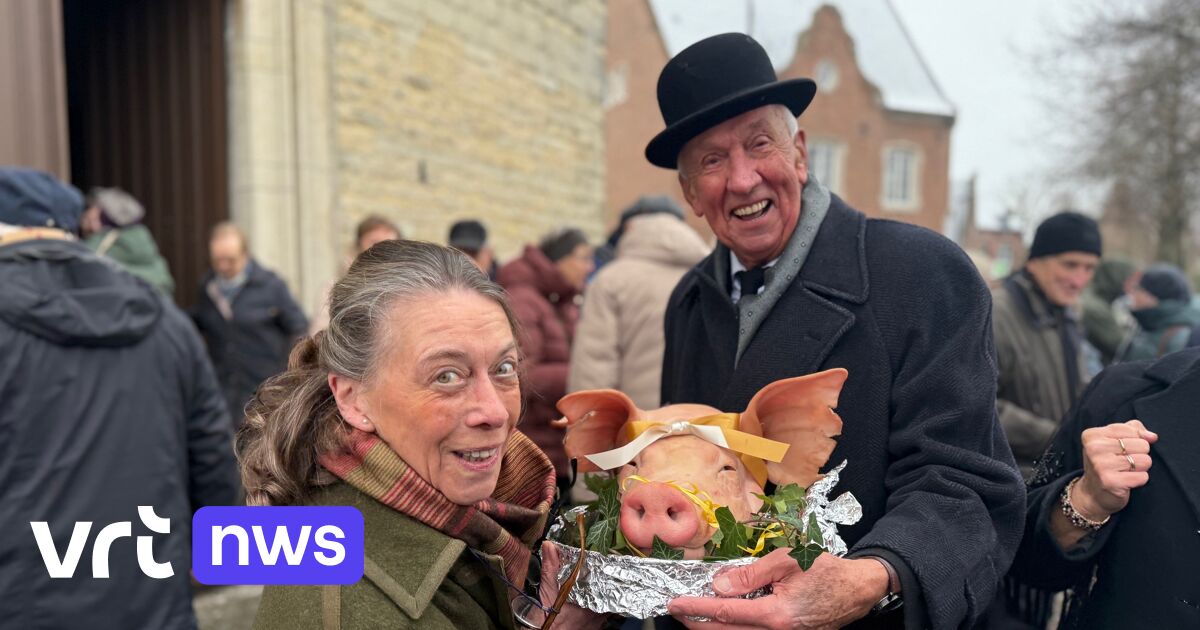 In Houtem, near Vilvoorde (Flemish Brabant), a pig's head was raffled during the annual Saint Anthony's Day celebrations. It’s a centuries-old tradition in this Flemish Brabantic municipality. Residents gather in the square outside the church for a street party in honour of Saint Anthony. Pig's trotters, tails and tripe are raffled during a tombola. The pig's head is the top prize. This year it was Dominique from Vilvoorde who won big.