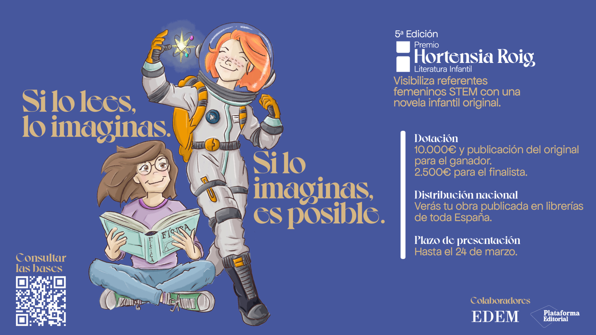 El Premio Hortensia Roig de literatura infantil celebra su quinto aniversario con una importante novedad: el aumento de la dotación económica de sus premios. El certamen, coorganizado por EDEM Escuela de Empresarios y Plataforma Editorial, busca despertar el interés entre las niñas por las profesiones relacionadas con la ciencia, la tecnología, la ingeniería y las matemáticas a través de la lectura. Para conmemorar este hito, la cuantía de los galardones ha aumentado un 25%: el relato ganador recibirá 10.000 euros y su publicación a nivel nacional, mientras que el segundo clasificado obtendrá 2.500 euros. El plazo de recepción de originales ya ha comenzado y finalizará el próximo 24 de marzo. La impulsora de la iniciativa, Hortensia Roig, presidenta de EDEM y consejera de Mercadona, ha manifestado su satisfacción por la trayectoria del premio. “En estos cinco años, el premio no ha hecho más que darme alegrías, se ha consolidado y sigue creciendo. No solo en la calidad de las obras y en el número de participantes, sino también en el número de niñas a las que estamos inspirando con nuestros libros”, ha afirmado Roig. Roig también ha recordado con cariño la anécdota de Ainoa García, ganadora de la tercera edición, quien le contó cómo una niña, tras leer su cuento 'Clara y el enigma de Tihapia', le dijo que quería dedicarse a la ingeniería, como la protagonista de la historia. “Hemos llegado a miles de lectores en colegios, bibliotecas y ferias, abriendo puertas a la imaginación y al aprendizaje”, ha añadido. Además, el certamen se ha consolidado como una plataforma para descubrir talentos literarios y para transmitir que las profesiones STEM son atractivas para las niñas en igualdad de condiciones. A lo largo de sus ediciones, ha dado visibilidad nacional a autoras como Andrea Navarro (“Elsa y el club de los números”), Eva Escudero (“Los coleccionistas de ceros”), la citada Ainoa García y Ana Ortiz (“Amor a primera fórmula”). Los candidatos mayores de edad residentes en España podrán presentar sus cuentos de forma telemática hasta el 24 de marzo. Según las bases, los manuscritos deben ser textos inéditos y originales y se especifica que no deben haber sido obtenidos como resultado de sistemas de Inteligencia Artificial. Las obras, escritas en castellano, deben tener una extensión de entre 35 y 50 páginas y estar dirigidas a lectores de 8 a 10 años. Las historias tienen como objetivo promover referentes femeninos en las profesiones STEM, destacando valores como la curiosidad, la confianza en uno mismo, la cultura del esfuerzo y el espíritu emprendedor. Un jurado independiente será el encargado de seleccionar la obra ganadora y la finalista. Estará integrado por personalidades como la oncóloga Ana Lluch, la científica Laura Lechuga, la periodista Gloria Lomana, la empresaria Ángela Pérez y el editor Jordi Nadal, junto a la propia Hortensia Roig. El fallo se dará a conocer en un acto público que se celebrará en octubre en Valencia.
