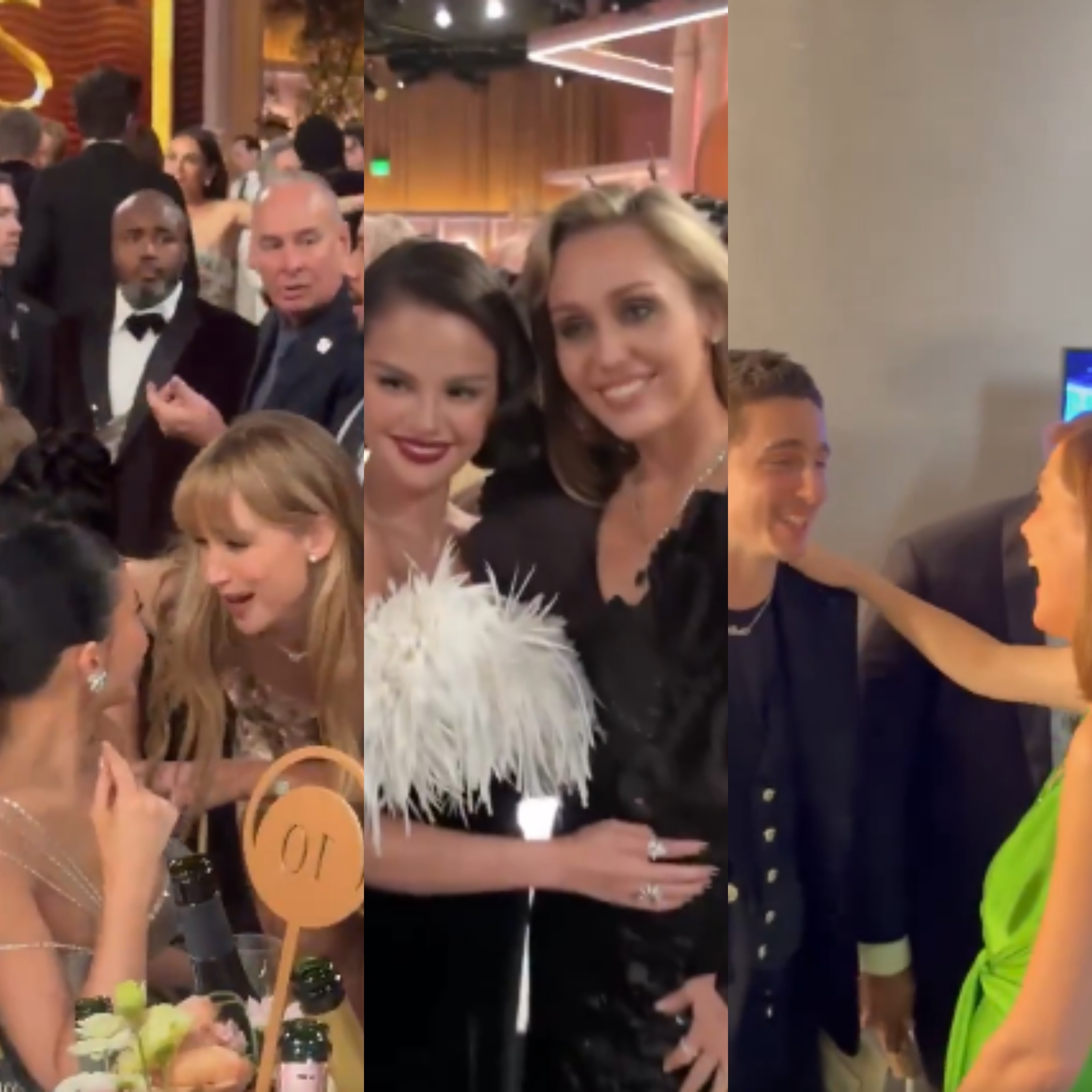 A cerimônia do Golden Globe Awards 2026 entregou uma sequência de momentos memoráveis durante a transmissão de domingo à noite, mas parte do que movimentou a premiação aconteceu longe das câmeras de TV. Enquanto Nikki Glaser comandava a festa no palco e One Battle After Another se consolidava como o grande vencedor da noite, cenas curiosas e encontros inesperados marcaram os bastidores do evento, realizado no hotel Beverly Hilton. Globo de Ouro 2026: vencedores recebem estadia em resort, creme de beleza de Brad Pitt e vinhos; conheça os brindes Princípio de incêndio na sala de imprensa Nos bastidores do Globo de Ouro, um suporte de café foi derrubado e acabou atingindo um recipiente com combustível usado para manter bebidas aquecidas. O material pegou fogo e, por alguns momentos, o carpete da área reservada à imprensa começou a queimar, gerando fumaça atrás das cortinas do espaço. Incêndio atinge bastidores do Globo de Ouro Reprodução/X O episódio foi relatado pelo jornalista Chris Gardner nas redes sociais, mas o fogo foi controlado rapidamente, sem necessidade de evacuação ou impacto na cerimônia. Vencedores comemoram longe do palco Entre uma entrega de prêmio e outra, os bastidores também foram palco de celebrações. Rose Byrne e Timothée Chalamet, vencedores nas categorias de melhor atriz e melhor ator em filme musical ou comédia, trocaram abraços e cumprimentos logo após deixarem o palco. Os dois ainda posaram juntos para fotos, em clima descontraído, em um dos espaços reservados aos premiados. Initial plugin text Reencontro de ex-estrelas da Disney Outro momento que chamou atenção aconteceu fora da transmissão oficial. Miley Cyrus e Selena Gomez se reencontraram durante a premiação e posaram juntas para fotos que rapidamente se espalharam pelas redes sociais. As duas, que começaram a carreira na Disney, estavam indicadas em categorias diferentes e protagonizaram um dos registros mais comentados da noite. Initial plugin text Conversa entre Jennifer Lawrence e Kylie Jenner Durante um intervalo comercial, Jennifer Lawrence deixou sua mesa e foi até o local onde estavam Kylie Jenner e Timothée Chalamet. Jenner acompanhava o namorado, indicado na cerimônia, e o encontro entre a atriz e a empresária rendeu sorrisos e uma conversa animada, registrada em vídeo pelo perfil oficial do evento. Initial plugin text