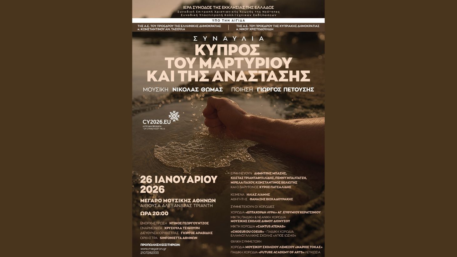 «Κύπρος του Μαρτυρίου και της Ανάστασης» στο Μέγαρο Μουσικής Αθηνών στις 26 Ιανουαρίου