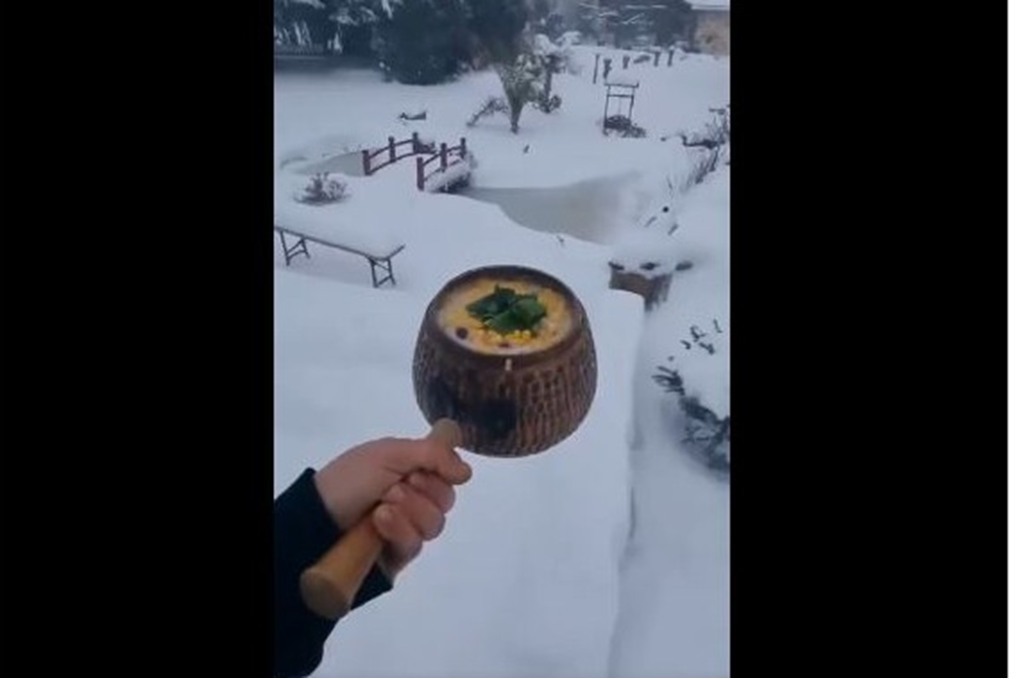 وسط عاصفة ثلجية.. سيدة تخرج لتُطعم دجاجاتها حساء ساخن?❄️