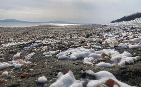 Студеният фронт не подмина и Бургас, като за броени часове превърна плажната ивица в истинска зимна приказка. Крайбрежната алея е преобразена от натрупани преспи, а по пясъка са пръснати замръзнали миди. Въпреки ниските температури, гледката към побелелия бряг и синьото море привлича ентусиасти за зимни снимки и разходки. Корабите в залива изглеждат като застинали в леденото спокойствие на днешния ден. Въпреки снега, морето остава сравнително спокойно, но в региона ще духа умерен и временно си