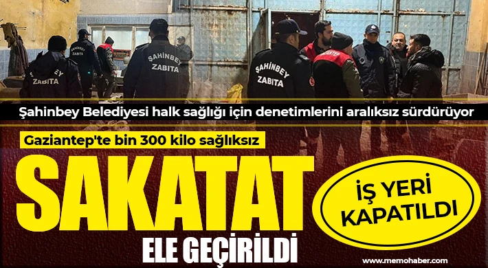 Gaziantep'te Şahinbey Belediyesi Zabıta Müdürlüğü ekipleri, ruhsatsız işletmede ele geçirdiği bin 300 kilo sağlıksız sakatatı imha ederek, işletmeyi kapattı. Merdiven altı üretim yaptığı belirlenen iş yerindeki denetimlerde hijyen kuralları ve insan sağlığının hiçe sayıldığı anlar ise dikkat çekti.