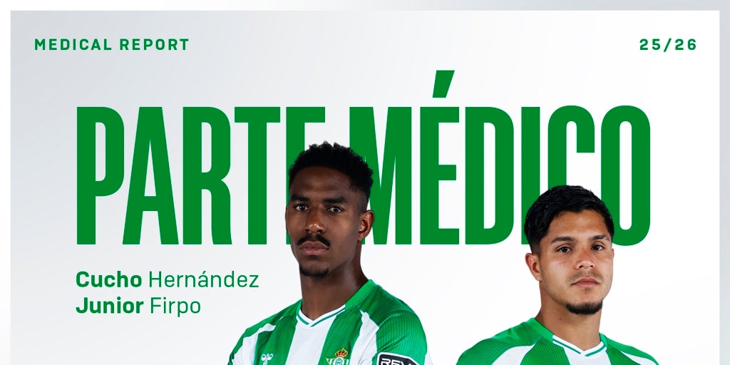El Real Betis ha dado a conocer el parte médico oficial de las lesiones que sufrieron Cucho Hernández y Junior ante el Oviedo y que les mantendrán de baja durante las próximas semanas. El delantero se perderá alrededor de un mes de competición, mientras que el lateral estará como mínimo tres semanas fuera de los terrenos de juego. Se producen estas ausencias justo cuando el conjunto verdiblanco afronta un cargado calendario con los frentes abiertos de la Copa del Rey, LaLiga y Europa League. El comunicado del Betis señala que «Cucho Hernández y Junior Firpo presentan sendas lesiones musculares tras el encuentro del sábado frente al Real Oviedo. Así lo han confirmado las pruebas a las que han sido sometidos ambos futbolistas en las últimas horas. El delantero colombiano sufre una lesión miofascial posterolateral del recto anterior izquierdo, mientras que el lateral zurdo padece una lesión miofascial del isquiotibial izquierdo. En ambos casos, su reincorporación al grupo dependerá de su evolución». De esta forma, ambos se unen a las ausencias del lesionado Isco y los internacionales marroquíes Abde y Amrabat, disputando la Copa de África, para los choques ante el Elche de este miércoles y Villarreal del sábado, ambos en la Cartuja, mientras que Ortiz tampoco podrá actuar en la Copa del Rey por molestias y Bellerín es seria duda para este encuentro.