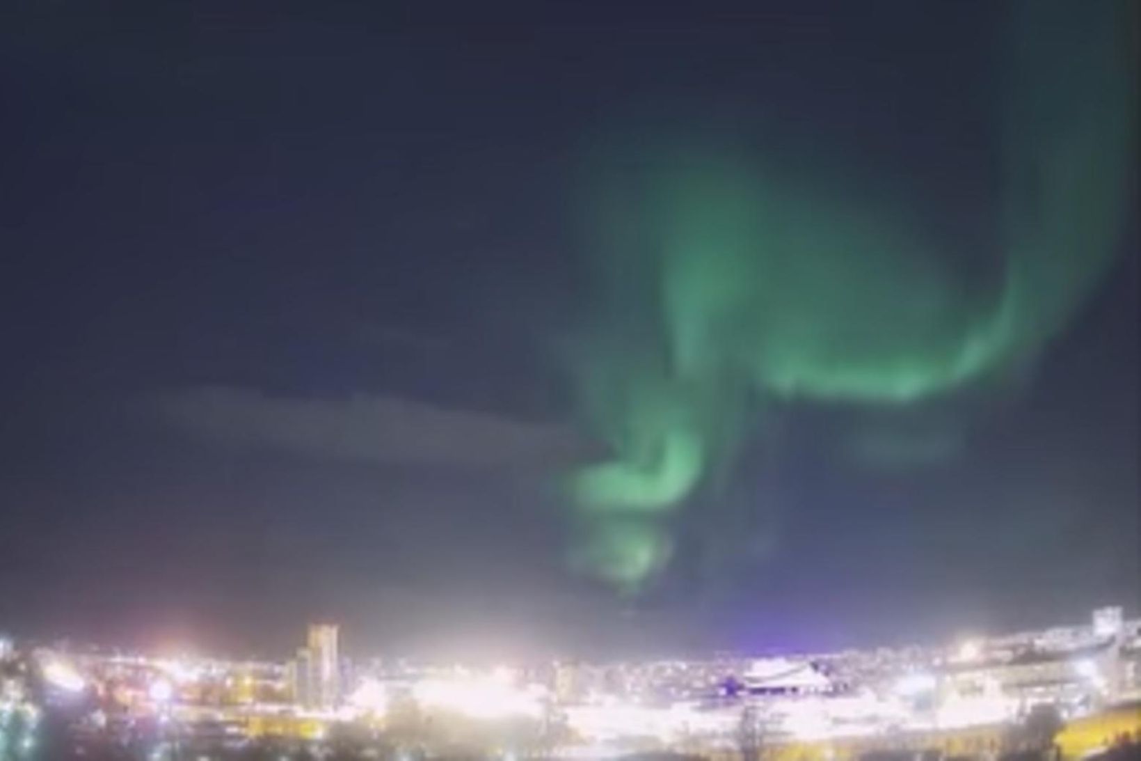 Myndskeið: Dansandi norðurljós yfir borginni