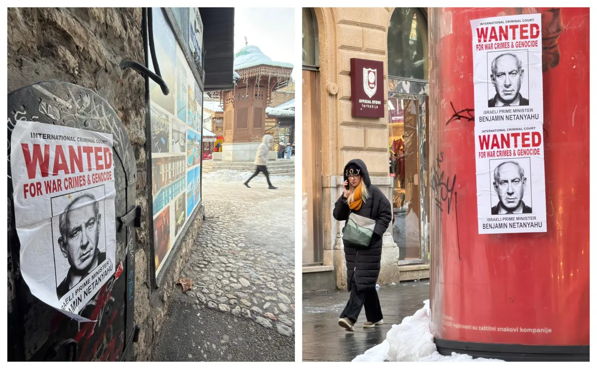 U užem centru Sarajeva pojavili su se plakati nalik potjernicama, na kojima se navodi ime izraelskog premijera Benjamina Netanyahua uz poruku da je tr