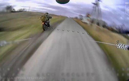На Куп'янському напрямку фронту Харківської області український оператор майстерно наздогнав та уразив російського загарбника на мотоциклі.