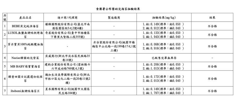 近期嬰幼兒海苔爆出重金屬超標危機,食藥署與地方衛生局上週抽驗後,發現7項嬰幼兒海苔食品重金屬鉛、鎘嚴重超標,截至昨日已下架回收產品2萬5047件,食藥署除透過相關專案進行後市場...…