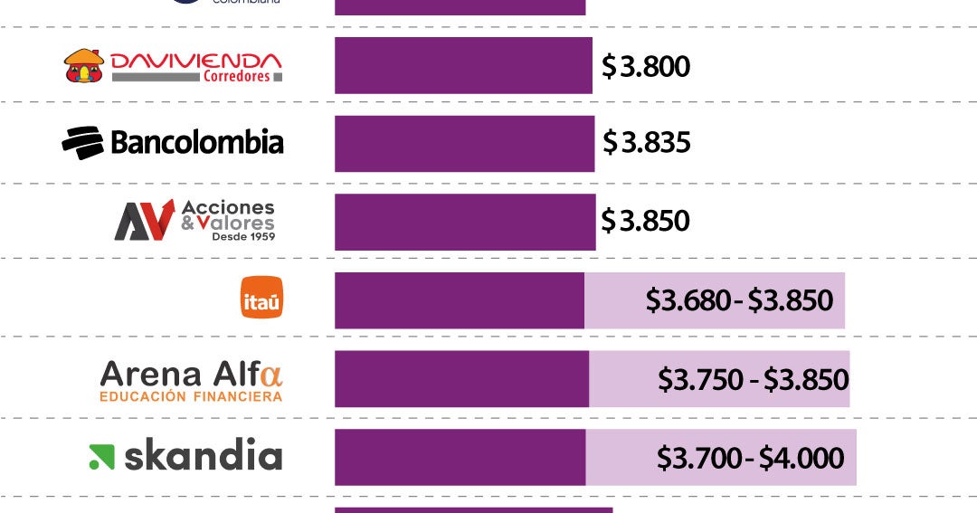 Entre las expectativas más optimistas en el primer trimestre están las de Itaú ($3.680- $3.850), Conficolombiana (3.700), Skandia ($3.700- $4.000), Arena Alfa ($3.750- $3.850)