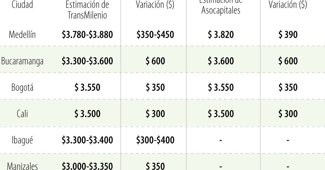 Para la capital de Antioquia se contemplan dos escenarios: uno de un incremento de $350 hasta $3.780 y otro de $450 de ajuste hasta $3.880 este año
