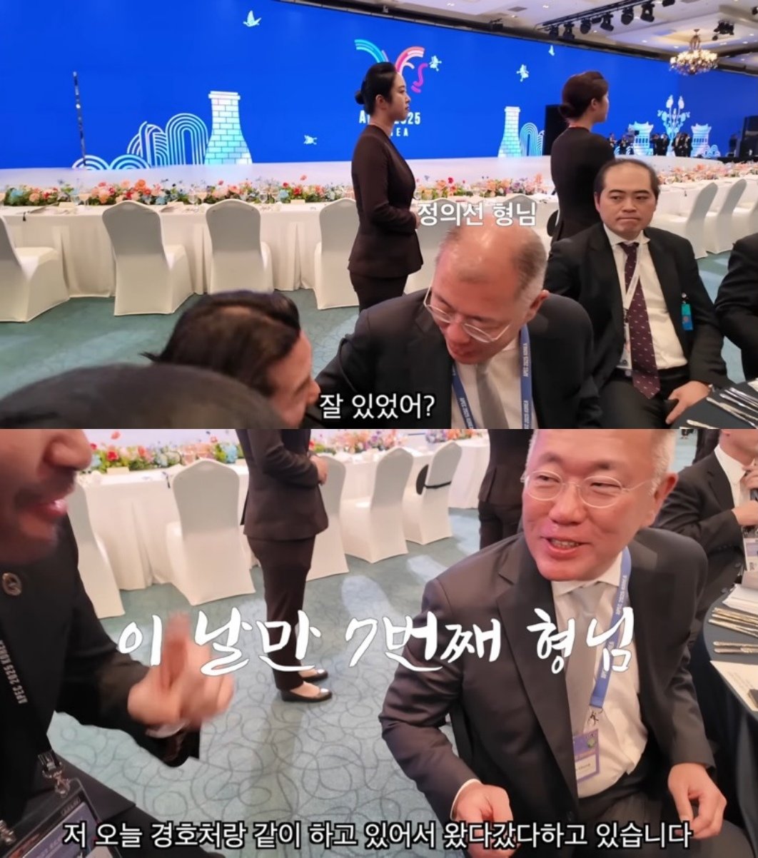 정의선 현대차그룹 회장과 노홍철이 공식 행사장에서 격의 없이 대화를 나누는 모습이 공개돼 화제다. 노홍철의 일일 명예 경호관 체험 영상과 두 사람의 인연이 다시 주목받고 있다.