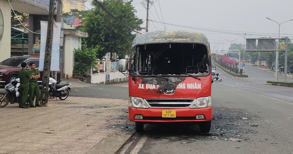 (NLĐO) - Chiếc xe khách đưa rước công nhân loại 29 chỗ đang đậu trước cổng trường học bất ngờ bốc cháy và gần như bị thiêu rụi hoàn toàn