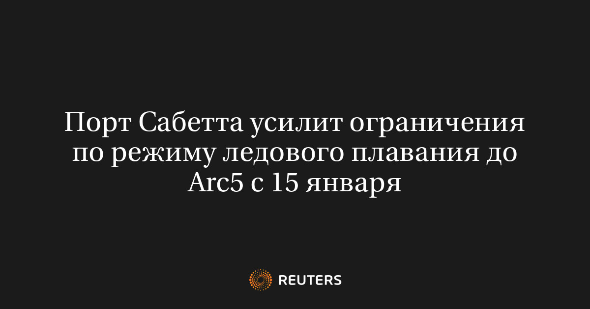 МОСКВА, 13 янв (Рейтер) - Российский арктический порт Сабетта, расположенный на восточном берегу полуострова Ямал, усилит ограничения по режиму ледового плавания на основании прогноза толщины льда, следует из распоряжения исполняющего обязанности капитана морского порта.