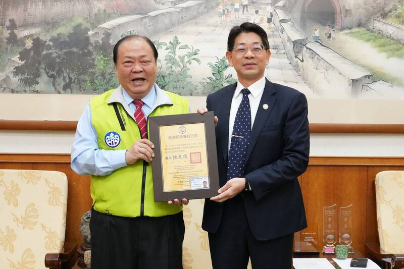 榮調竹縣 澎湖調查站主任林山峻獲頒澎湖榮譽縣民證
