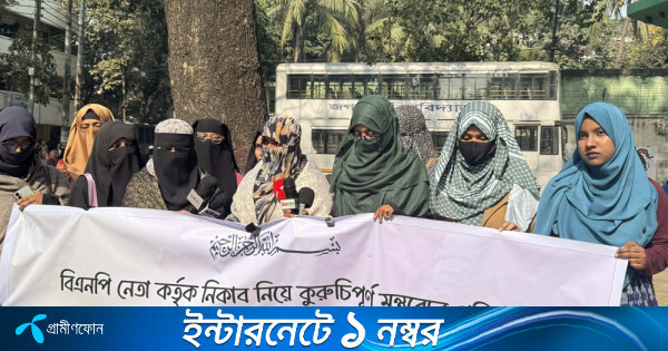 নিকাব নিয়ে কুরুচিপূর্ণ মন্তব্যের প্রতিবাদে জবি ছাত্রী সংস্থার মানববন্ধন
