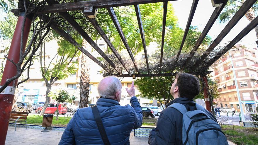 Vecinos cuestionan que las pérgolas del Parque de Valencia, en Carrús, estén en buen estado después de que se haya retirado el techo de una después de dos meses estropeada. Al hilo, critican que hay zonas del firme en mal estado, algunos azulejos rotos y excrementos de perros.