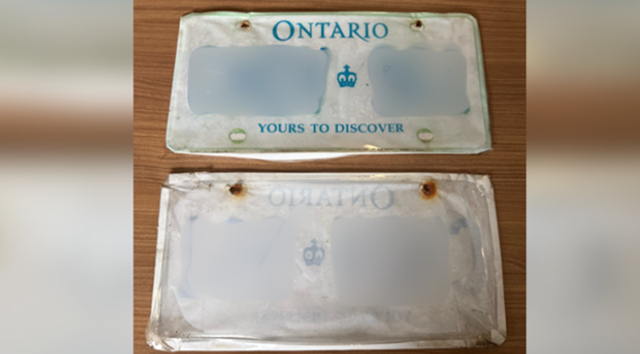 Officers discovered that the plates were actually made of paper and secured in a plastic sleeve with packing tape.