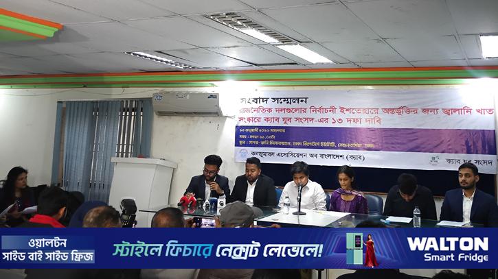 ত্রয়োদশ জাতীয় সংসদ নির্বাচনে রাজনৈতিক দলগুলোর নির্বাচনি ইশতেহারে জ্বালানি খাত সংস্কারে ১৩ দফা যুক্ত করার দাবি জানিয়েছে ক্যাব যুব সংসদ। মঙ্গলবার (১৩ জানুয়ারি) সকালে ঢাকা রিপোর্টার্স ইউনিটির সাগর-রুনি হলে সংবাদ সম্মেলনে এসে এই দাবি তুলে ধরে সংগঠনটি।