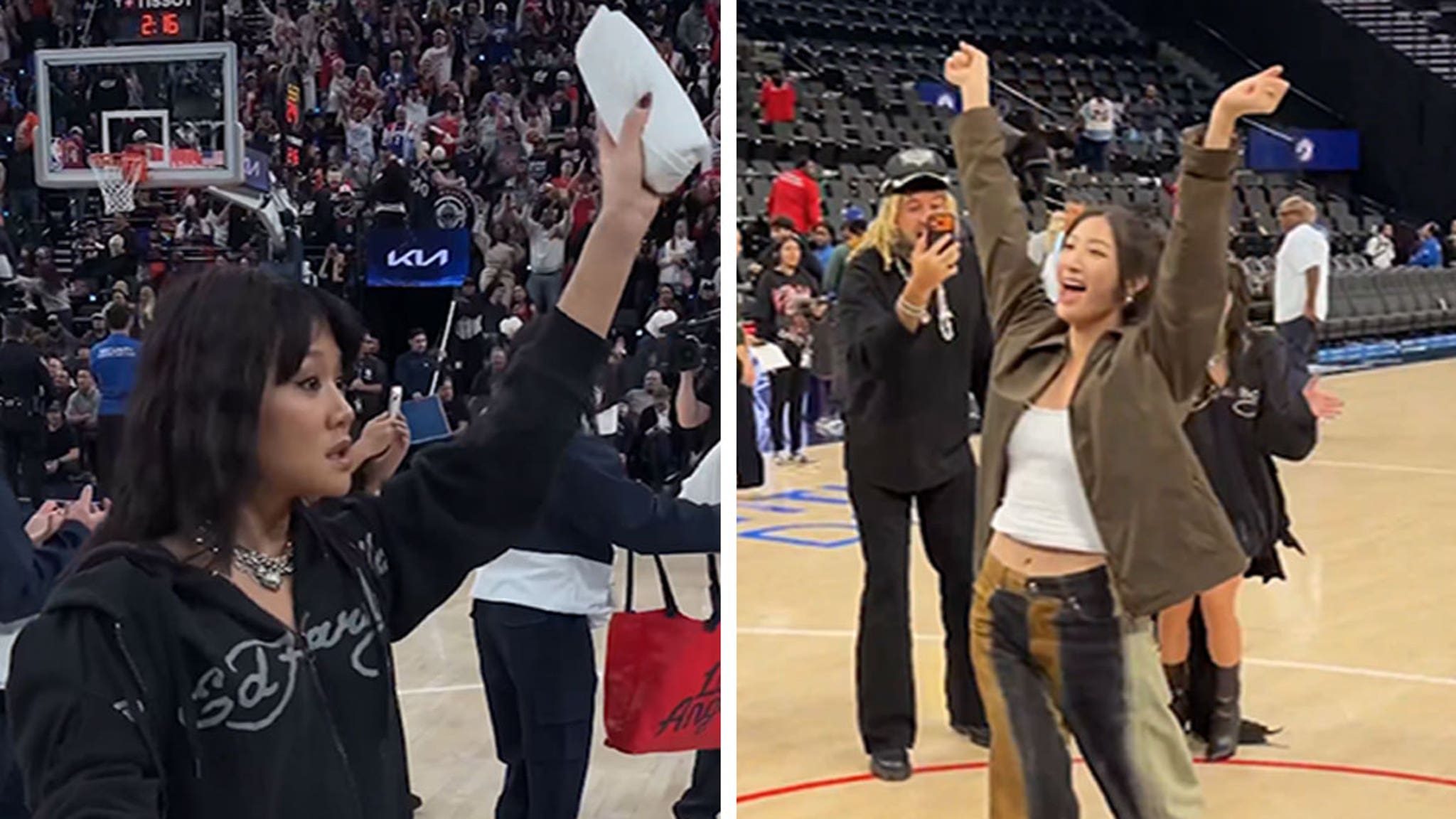 'KPop Demon Hunters' Singers EJAE, Rei Ami Throw Shirts, Shoot Hoops At Clippers Game