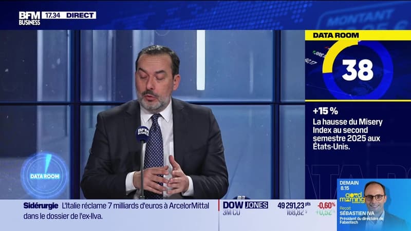 Ce mardi 13 janvier, Sébastien Korchia, directeur general et directeur des investissements chez COGEFI Gestion, et Alain Pitous, senior advisor ESG, se sont penchés sur la hausse du Misery Index aux États-Unis au second semestre 2025, estimée à +15?%, ainsi que sur le marché mondial de la robotique, appelé à être multiplié par 250 d’ici 2050, dans l'émission BFM Bourse présentée par Guillaume Sommerer. BFM Bourse est à voir ou écouter du lundi au vendredi sur BFM Business.