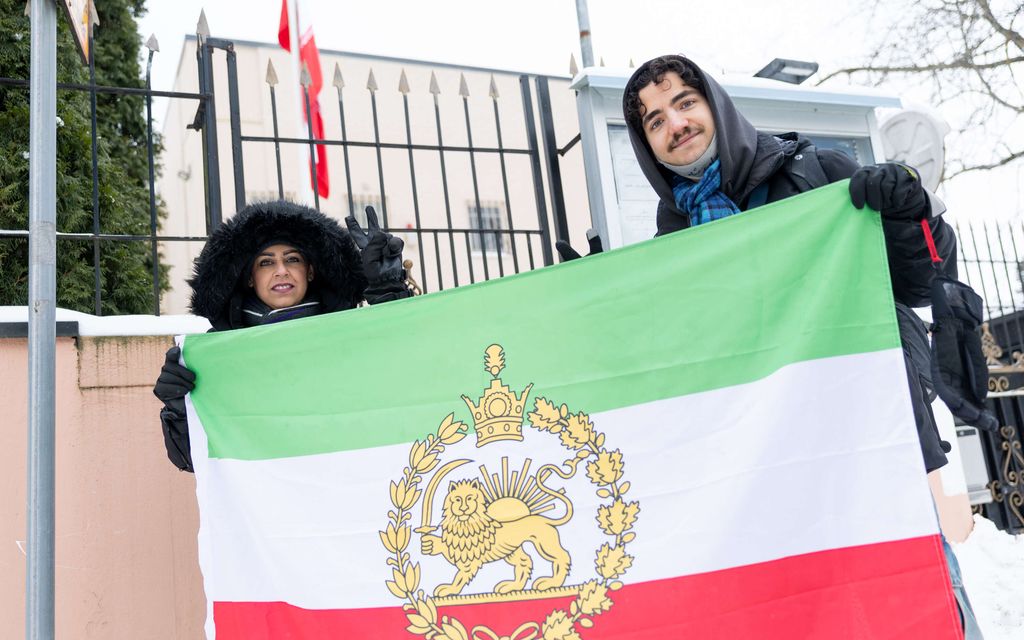 ”Haluamme kuninkaamme takaisin” – Kymmenet osoittivat mieltään Iranin suurlähetystöllä