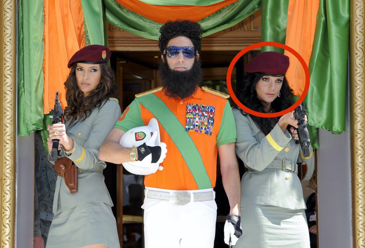 Jessica Moretti di fianco a Sacha Baron Cohen sul red carpet de “Il dittatore”