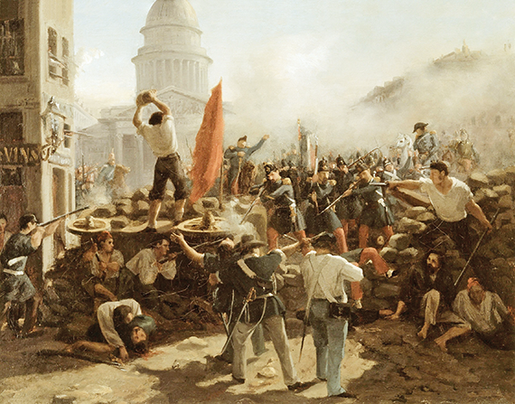 Tarihin motoru sınıf mücadeleleridir. Bu tüm toplumsal ve bireysel ilişkilerin sınıfsal konumdan ibaret olduğu değil, bu ilişkilerin en sonunda o konum tarafından belirlendiği anlamına gelir. Üretim ilişkileri ve onun belirlenimi altındaki üstyapı kurumları hem toplumsal süreçlerin hem de sınıf mücadelesinin alanıdır. Yani mücadele sadece iktisadi alanda hatta sadece siyasal alanda değil, ideolojik alanda da verilir. Kavramlar, hele siyasi konumların ilanı anlamına gelenleri elbette bir mücadelenin konusudur. Sol da bu kavramlardan birisidir. Hem böyledir hem de böyle olagelmiştir. Yani hem dün hem de bugün başka kavramlar üzerinde olduğu gibi sol kavramı üzerinde de bir mücadele sürmektedir. Birçok siyasi kavram gibi sol kavramının kökeni de Fransız Devrimi’ne dayanmaktadır. Devrimle ortaya çıkan mecliste kralcılar, aristokratlar ve kilise temsilcileri yani düzenin temsilcileri meclisin sağ tarafında yer alırken cumhuriyetçiler, halkçılar yani Jakobenler solda oturuyorlardı. Ortadaki kararsız kalabalığın bulunduğu yere ise Bataklık deniliyordu. Fransız Devrimi eşitlik, özgürlük, kardeşlik sloganları demekti. Arkasına aldığı Aydınlanma düşüncesi laikliği dayatıyordu. İnsanlar eşittir. İnsan doğayı ve toplumu kavrayabilir, anlayabilir ve yani değiştirebilir. Bu tezlerin tamamı meclisin sol tarafında oturanlarca temsil ediliyordu. Sol, cumhuriyetçilik, laiklik, devrim demekti. Toplumsal olaylar tarihseldir. Yani değişkendirler. Yani bu tablo da aynı kalmadı. Devrim ilerleyip kralcılar tasfiye edilince tüm meclis cumhuriyetçilere kaldı. Bu kez sağda ılımlı cumhuriyetçiler, Jirondenler oturur oldular. Sol, Jakobenlere; Marat, Danton ve Robespierre gibi gerçek halkçı ve cumhuriyetçilere kaldı. Ama orada da kalmadı. Devrim ileriye yani sola doğru yol aldıkça sırayla hepsi yaşamlarını bu kavgada ya suikastle ya da giyotinle kaybettiler. Devrim, hedefine yani eşitlik ve özgürlüğe en yaklaştığı yerde devrildi. Gerçek halkçıların gerçek cumhuriyetçilerin kızıl terörünün yerini Thermidor gericiliği ve beyaz terör aldı. Ardından Napoléon, sonra Bourbon, ardından Orléans hanedanlıkları... Büyük Fransız Devrimi yerini bir devrimler çağına devrederek çekildi. İnsanlık burjuvazinin önderliğinde cumhuriyetle ve laiklikle tanışmıştı. Tüm insanlık adına iktidarı isteyen burjuvazi, iktidarını oluştururken kendisiyle barikatlarda dövüşen emekçileri geride bıraktı. İnsanlar eşitti ama burjuvalar daha eşitti. İktidara yürürken sol olan, burjuvazi iktidarında sağa yerleşti. Sol artık sahneye çıkmaya başlayan işçi sınıfının adıydı. Üç sloganı temsil eden üç renkli bayrağın yerini, eşitliğin kızılı aldı. Öyle ki 1845’in sonuna gelindiğinde Engels “Günümüzde demokrasi komünizmdir” diye yazıyordu. İşçi sınıfı sahneye çıktı ve insanlığın bütün ilerici birikimini kendi sırtına yüklendi. Artık her güzel şey işçilerin ellerindeydi. Sol artık komünizmdi. 1848 Devrimleri bunu mühürledi. Burjuvazi artık ilerici değil gericiydi. Çünkü kendisini geliştirirken kendi mezar kazıcılarını da geliştirmek zorundaydı. Kendilerinden onlarca, yüzlerce giderek binlerce kat fazla işçi üretmek zorundaydı. İşçi sınıfının taleplerine kan dökerek yanıt verildi ama çok geçmeden yeniden duyulacaktı o talepler. Rue Soufflot barikatı 1848. Ressam: Horace Vernet. Cumhuriyet, laiklik, bağımsızlık Kapitalizm gelişiyordu ama bu gelişme zorunlu olarak eşitsiz bir gelişmeydi. Arkadan gelen devrimler kendilerinden önceki tecrübelerden yararlanmayı bildiklerinden, Alman burjuvazisi kendisinden önceki dönemin egemen sınıfıyla ittifakını Fransız sınıfdaşlarından önce yaptı ve bunun bedeli bu sınıf kardeşlerine patladı. Almanya ile savaş Fransa’ya 3. Cumhuriyet’i ve dünyaya Paris Komünü’nü armağan etti. 70 gün sadece işgalcilerin değil kendi burjuvalarının da toplarına karşı direnen komüncüler, cumhuriyetçilik ve laiklikten sonra bağımsızlık bayrağını da burjuvazinin elinden aldılar. Artık dünya işçi sınıfının iktidarıyla da tanıştı. İnsanlığın tüm ilerici değerleri komüncülerin elindeydi. Bunun bedelini canlarıyla ödediler. Devrimler çağı yerini sosyal demokrasi dönemi diyebileceğimiz bir döneme bıraktı. Bu dönem solun Marx ve Engels’den yavaş yavaş uzaklaşması anlamına geldi diyebiliriz. Sosyal demokratlar önce Lasallecılar’la uzlaşmaya gittiler. Ortaya çıkan bu programları çok sert eleştirdiler ama sağa gidişe engel olmaya ömürleri yetmedi ustaların. İkinci Enternasyonal elbette sadece reformistlerden oluşmuyordu. Lenin ve partisi de Rosa ve yoldaşları da oradaydı ama bu sürece hâkim hava reformizm oldu dersek çok da yanlışlık yapmış olmayız. O kadar ki 1914’te işçi sınıfını burjuvazinin peşinden savaşa sokmaya kadar götürdüler işi ve Lenin ve yoldaşlarına bunu eleştirmek düştü. Solun tümü adına başta Bolşevikler olmak üzere bir avuç devrimci korudu solun ilkelerini. İşte o zaman kimin sol olduğu solun ne olduğu tartışmaları asıl şeklini aldı. Sınıf mücadeleleri her zaman somuttur. İdeolojik düzeyde verilse bile. İkinci Enternasyonal ihanetini sağda bırakıp sola yeni bir kulvar açmak 1917’de Lenin ve yoldaşlarına düştü. Rusya’da burjuvazi iktidara gelmişti yani burjuva devrimi tamamlanmıştı. Gündemde sosyalist devrim yani işçi sınıfı iktidarı vardı. Bunun için de ilk iş olarak yeni bir parti ve yeni bir enternasyonal gerekiyordu: Komünist Parti ve Komünist Enternasyonal. Nisan’da Petrograd Garı’nda mühürlü trenden inip üstüne çıktığı zırhlı araçtan ilan ediyordu bunları Lenin. Sol bir kez daha komünizm olmuştu. Ve bu kez öyle 70 günlüğüne değil. Bu öy