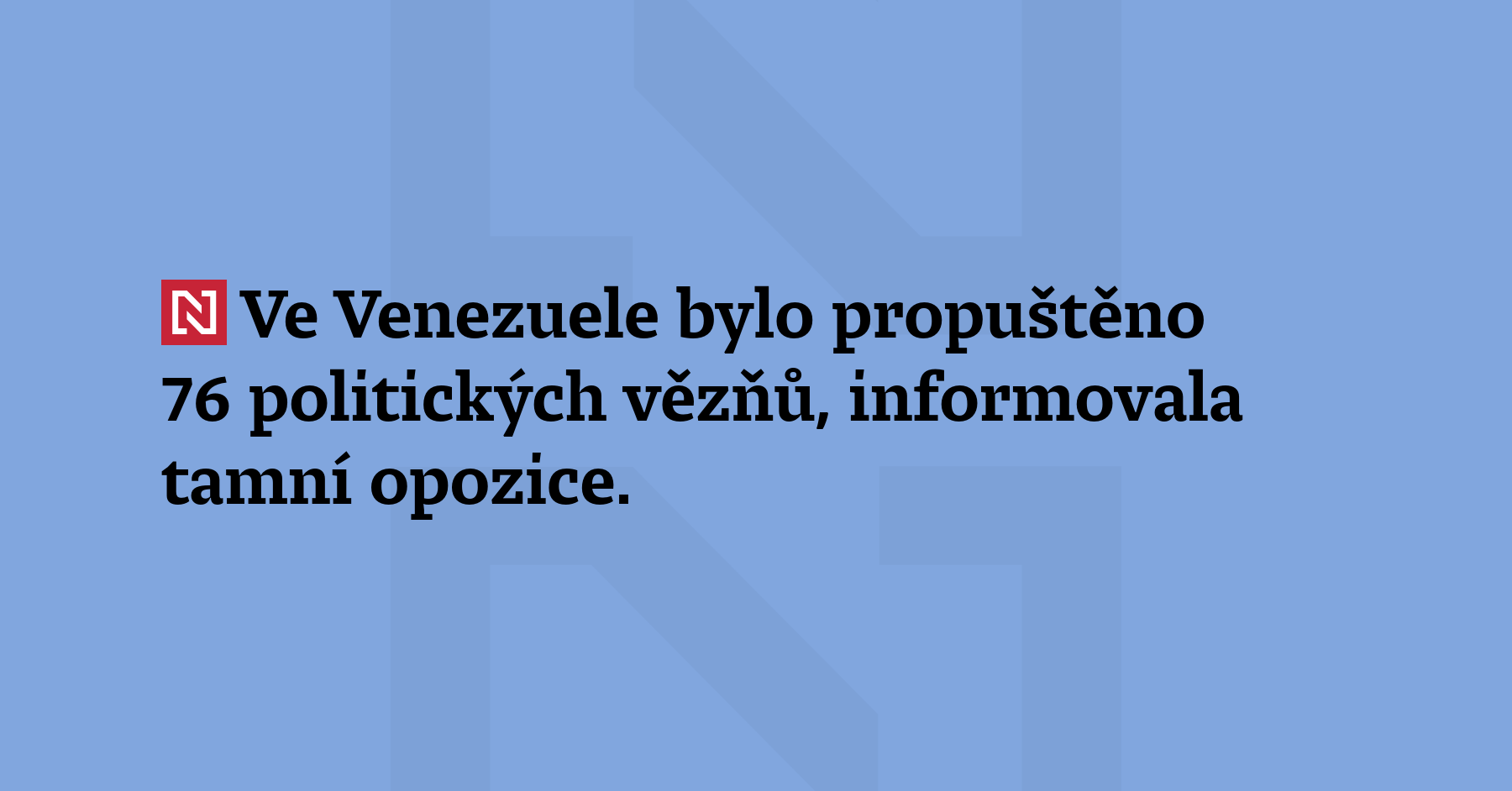 Ve Venezuele bylo propuštěno 76 politických vězňů, informovala tamní opozice. Čech Jan Darmovzal, který je ve Venezuele vězněn od předloňského září, mezi nimi není. (ČTK)