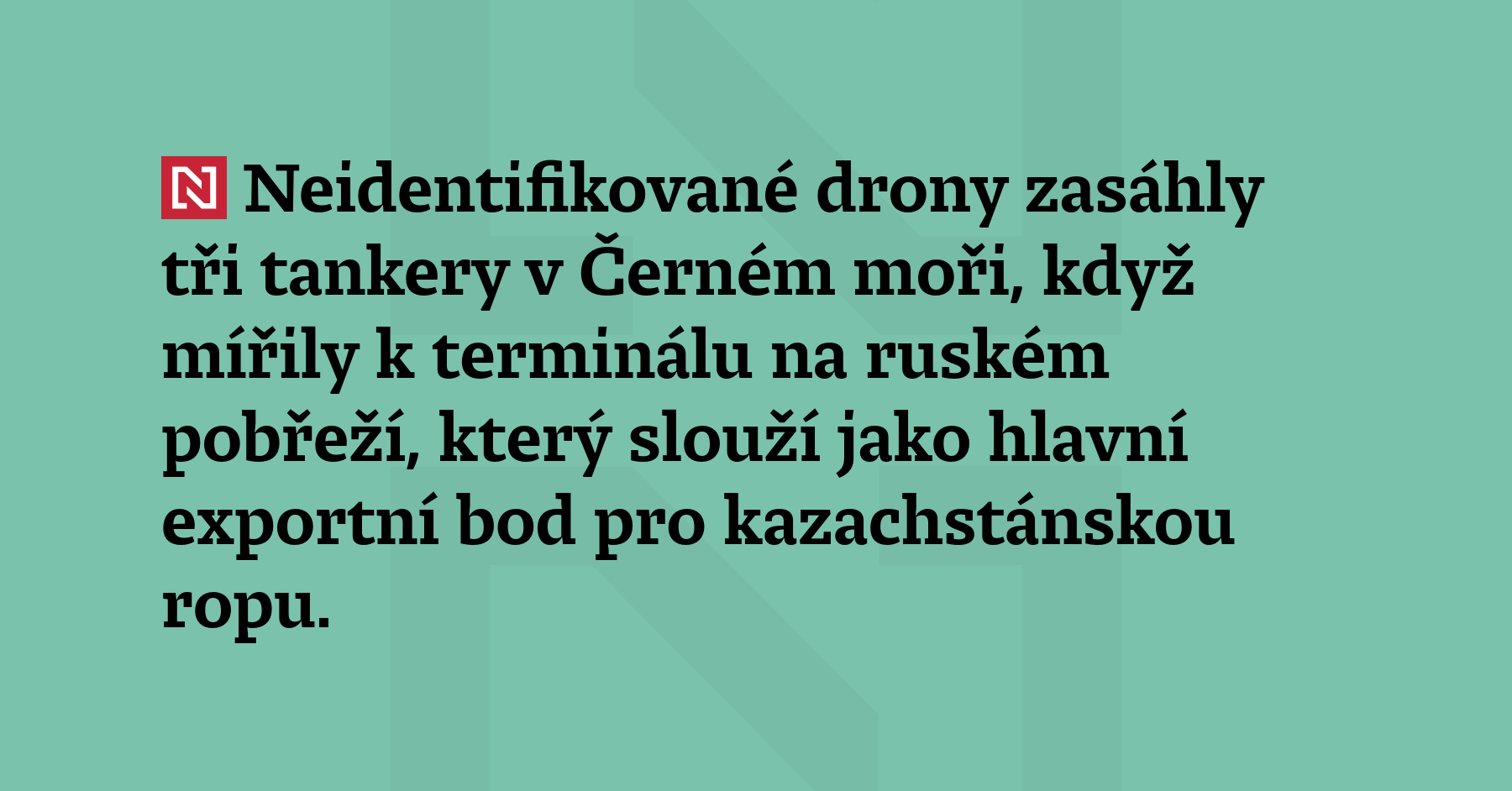 Neidentifikované drony zasáhly tři tankery v Černém moři, když mířily k terminálu na ruském pobřeží, který slouží jako hlavní exportní bod pro kazachstánskou ropu. Napsala to dnes agentura Reuters s odvoláním na své zdroje. Všechna tři plavidla podle ní provozují řecké společnosti. K útoku se nikdo nepřihlásil. (ČTK)