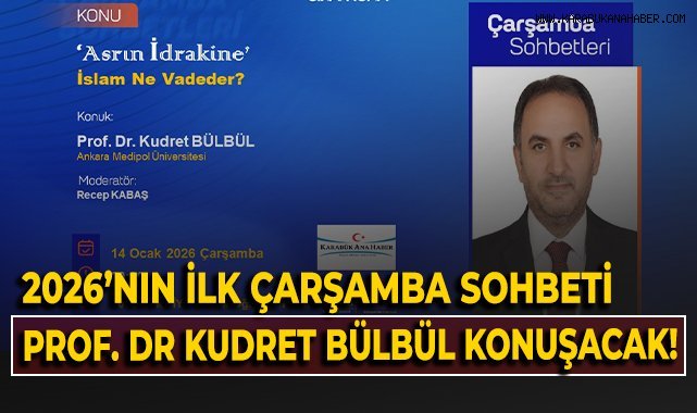 Karabük’te düzenlenecek “Çarşamba Sohbetleri”nin 2026 yılındaki ilk programında Prof. Dr. Kudret Bülbül, “Asrın İdrakine İslam Ne Vadeder?” konulu söyleşiyle katılımcılarla buluşacak.
