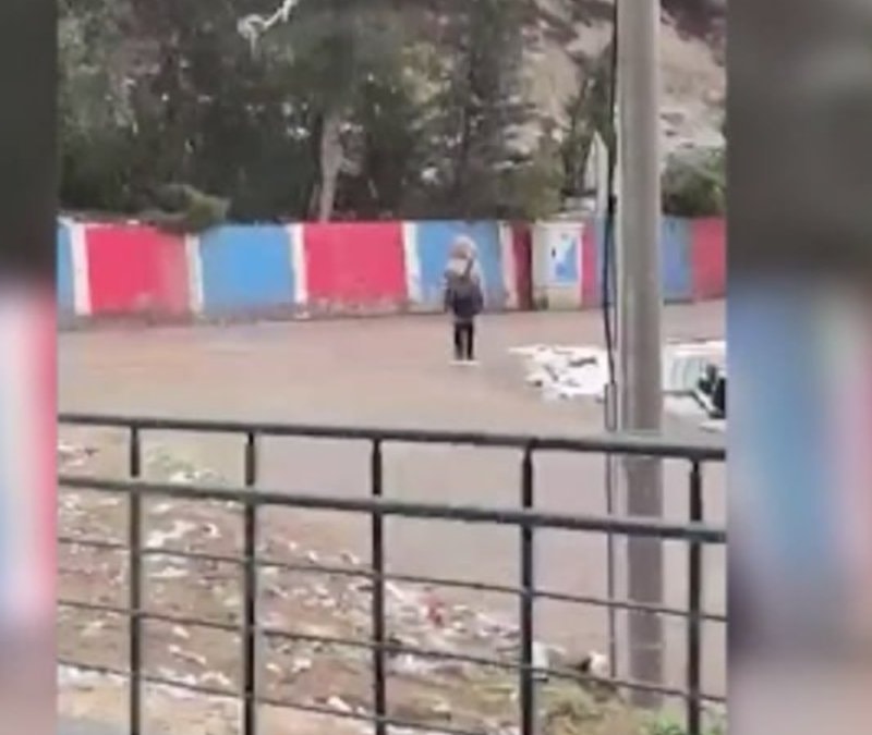 Karabük’te kar yağışı altında okula gitmeye çalışan bir ilkokul öğrencisi, İstiklal Marşı’nın okunmaya başladığını duyunca yolun ortasında durarak saygı duruşunda bulundu.