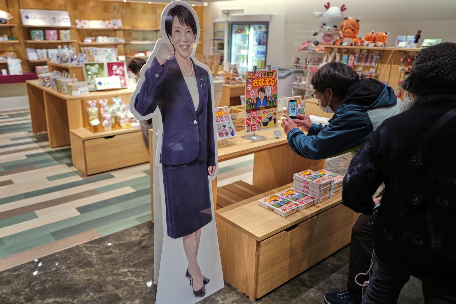 A life-size cutout of Japanese Prime Minister Sanae Takaichi is displayed at a souvenir shop near the venue of the Japan-South Korea summit meeting in Nara, Takaichi's hometown,…