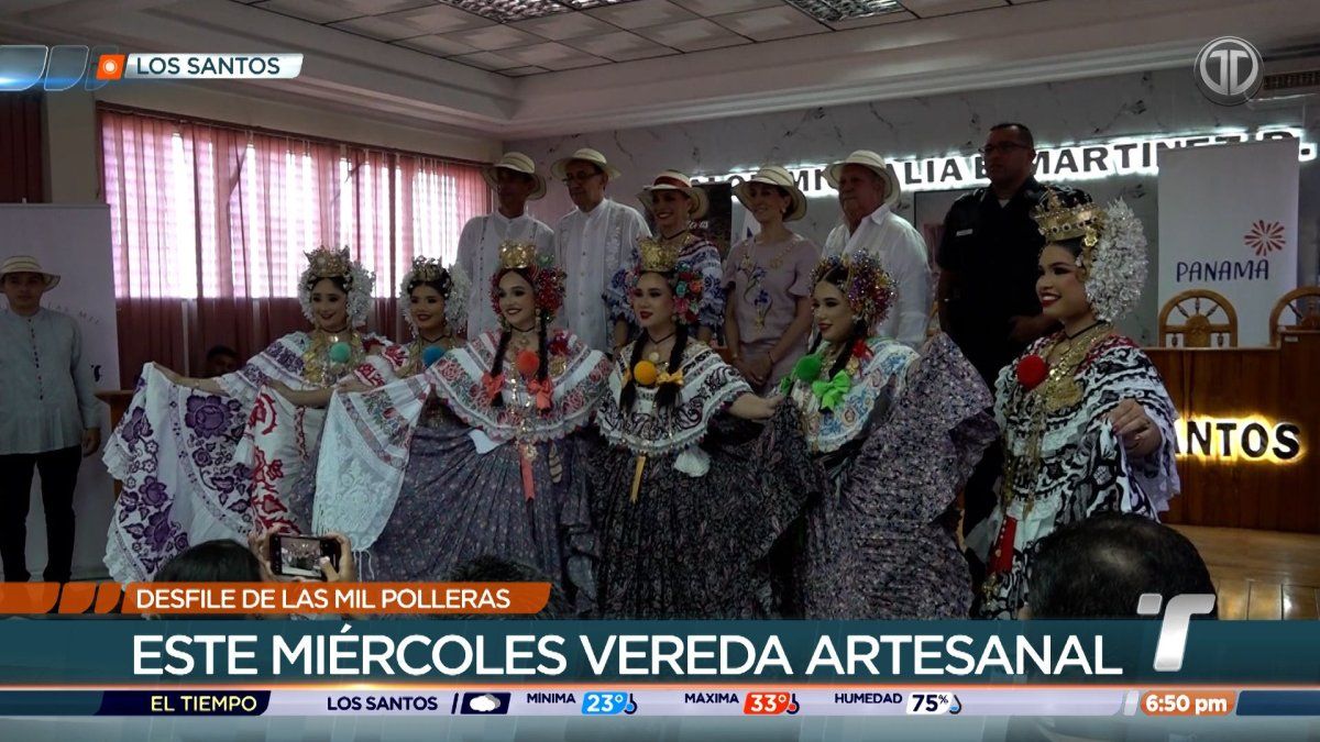 Con la Vereda Artesanal arrancan las actividades previas al Desfile de Las Mil Polleras en la ciudad de Las Tablas. En el sector de Pedasí se realizará una junta de embarre y cantadera con música en vivo para las familias. El desfile arranca las 1:00 p.m. el sábado 17 de enero con la participación de 105 delegaciones.