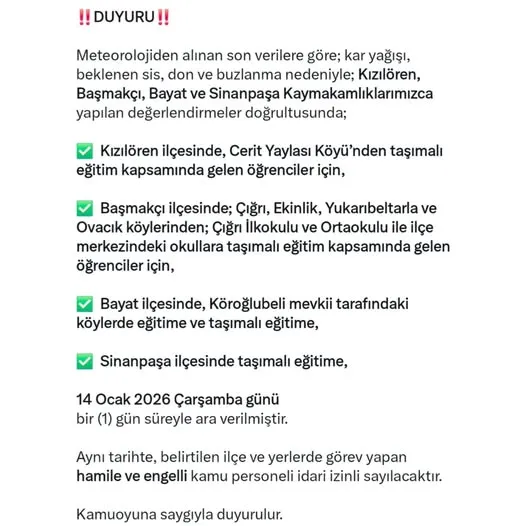 afyonkarahisar'da kar nedeniyle eğitime bir gün ara