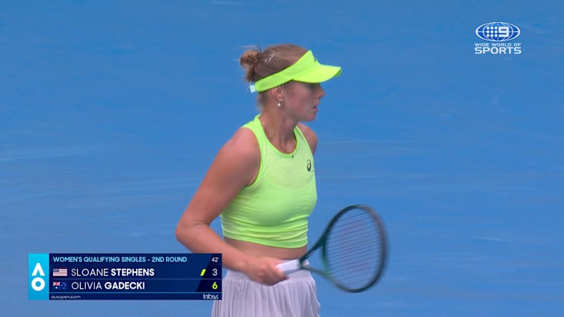 Australian Olivia Gadecki takes the first set 6-3 against 2017 US Open champion Sloane Stephens in the second round of Australian Open qualifying.