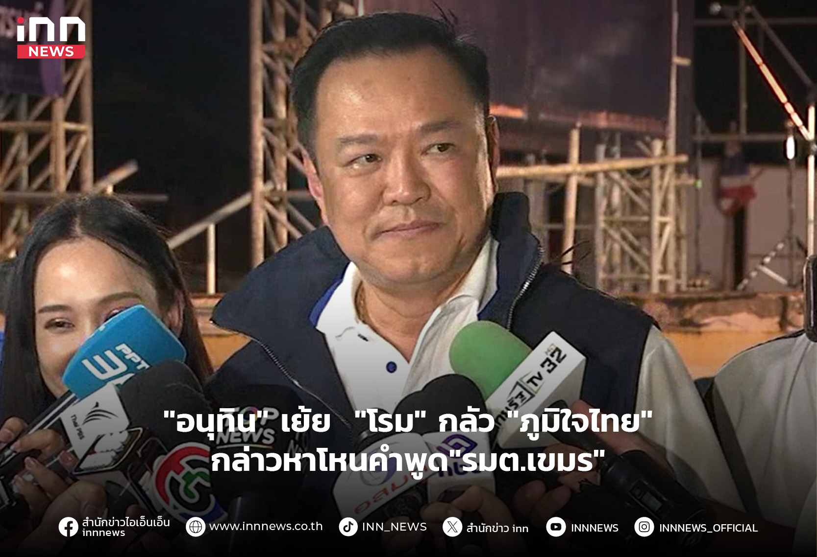 “อนุทิน” เย้ย “โรม” กลัว “ภูมิใจไทย” ไล่ย้อนดูตัวเองก่อน กล่าวหาโหนคำพูด”รมต.เขมร”เรียกคะแนนนิยม ซัด?อย่าว่าพรรคอื่น – ดิสเครดิต – ด้อยค่า ขอต่างคนต่างทำงาน