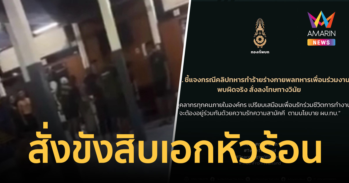 ทบ. สั่งขัง 45 วัน! สิบเอกหัวร้อนทำร้ายพลทหาร ยันผิดวินัยร้ายแรง ย้ำนโยบาย ผบ.ทบ. กำลังพลคือ "เพื่อนรักร่วมชีวิต" ใครฝ่าฝืนลงโทษไม่มีข้อยกเว้น