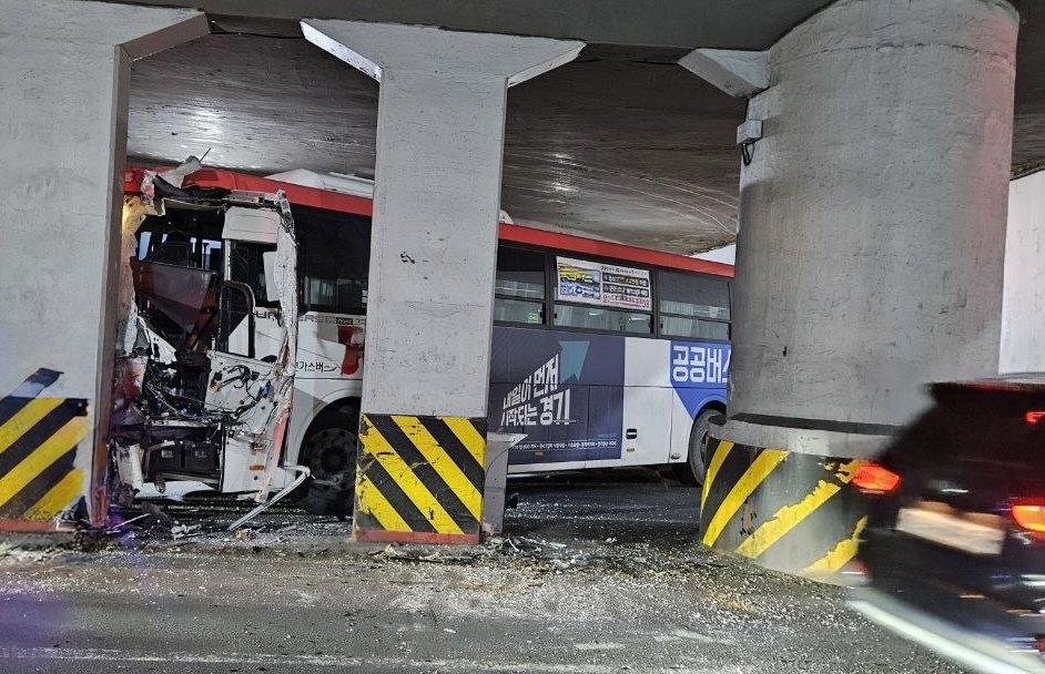 경기 수원시 한 도로를 달리던 광역버스가 미끄러지면서 지하차도 기둥을 들이받는 단독 사고를 내 9명이 다쳤다.14일 수원권선경찰서 등에 따르면 전날 오후 5시 38분께 수원시 권선구 세류동 세평지하차도 내부를 달리던 광역버스가 기둥을 들이받았다.당시 광역버스에 타고 있던 승객 9명은 모두 경상을 입었다. 이들 가운데 일부는 병원으로 이송됐고, 몇몇은 귀가한 것으로 전해졌다.2차 사고는 발생하지 않았다.광역버스 기사 A 씨(50대)는 경찰에 “빙판길에 미끄러졌다”는 취지로 진술한 것으로 알려졌다.그에게서 음주나 무면허 등 교통법규 위반 사항은 확인되지 않았다.경찰은 A 씨 진술을 토대로 자세한 사고 경위를 조사 중이다.(수원=뉴스1)