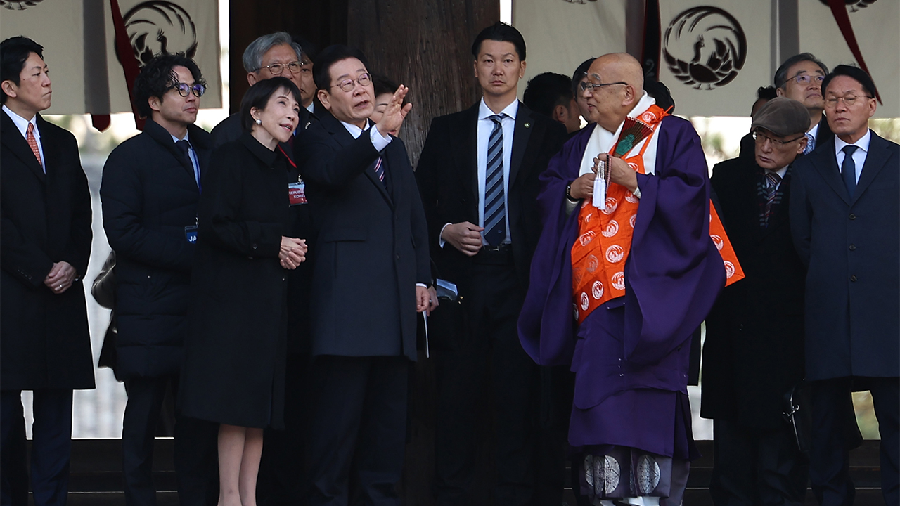 이 대통령, 다카이치와 '고대 한일 교류 역사' 호류지 사찰 찾아