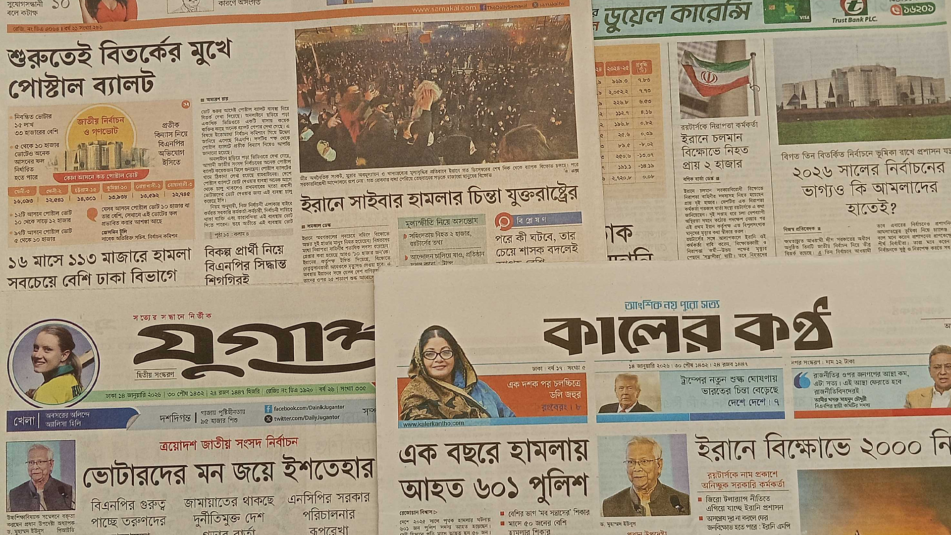 প্রতিদিন পাঠকের কাছে দেশের আলোচিত ঘটনা, রাজনৈতিক উত্তাপ, অর্থনৈতিক পরিস্থিতি, সমাজের পরিবর্তন এবং বিশ্বমঞ্চের নতুন বার্তা তুলে ধরে সংবাদপত্রগুলো। তথ্যপিপাসুদের তথ্যের চাহিদা মেটাতে সময় সংবাদ দেশের প্রধান প্রধান সংবাদপত্রের গুরুত্বপূর্ণ শিরোনাম পাঠকের সামনে তুলে ধরছে। এক নজরে জেনে নিন দেশের প্রধান সংবাদপত্রগুলোর প্রতিবেদন।দেশের শীর্ষস্থানীয় জাতীয় পত্রিকায় বুধবার (১৪ জানুয়ারি) প্রকাশিত কিছু খবর নিচে তুলে ধরা হলো। ভোটারদের মন জয়ে ইশতেহার - দৈনিক যুগান্তরের প্রধান সংবাদ এটি। প্রতিবেদনে বলা হয়েছে, রাষ্ট্রকাঠামো মেরামতে এর আগে ঘোষিত ৩১ দফাসহ জনকল্যাণমুখী ইস্যুকে প্রাধান্য দিয়ে নির্বাচনি ইশতেহার প্রস্তুত করছে বিএনপি। নতুন ভাবনার মধ্যে ৫ আগস্টের গণ-অভ্যুত্থানপরবর্তী তরুণ প্রজন্মের প্রত্যাশাকে বিবেচনায় রেখে অগ্রসর হচ্ছে দলটি। দেশ গড়ার পরিকল্পনায় ফ্যামিলি কার্ড, কৃষক কার্ড, স্বাস্থ্য, শিক্ষা, ক্রীড়া, পরিবেশ, কর্মসংস্থান ও ধর্মীয় নেতাদের জীবনমান উন্নয়নকেও বিশেষ গুরুত্ব দেয়া হবে। পাশাপাশি বিএনপির চেয়ারম্যান তারেক রহমানের সাম্প্রতিক নানা বক্তব্যের মূল বিষয়গুলোও ইশতেহারে প্রতিফলিত হবে। আধুনিক রাষ্ট্র বিনির্মাণ ও জনগণের প্রত্যাশা পূরণে তারেক রহমানের ‘আই হ্যাভ অ্যা প্লান’ নির্বাচনি ইশতেহারে যোগ হচ্ছে। দুর্নীতিমুক্ত দেশ গড়ার প্রতিশ্রুতি বিশেষভাবে গুরুত্ব পাচ্ছে।আসন সমঝোতায় শেষ সময়েও টানাপোড়েন - দৈনিক প্রথম আলোর প্রথম পাতার খবর এটি। প্রতিবেদনে বলা হয়েছে, আসন বণ্টন নিয়ে জামায়াতে ইসলামীর সঙ্গে ইসলামী আন্দোলন বাংলাদেশ ও বাংলাদেশ খেলাফত মজলিসের টানপোড়েনের কারণে ১১ দলের আসন সমঝোতা গতকাল মঙ্গলবার রাত পর্যন্ত চূড়ান্ত হয়নি। যদিও গতকালই এ সমঝোতা চূড়ান্ত হওয়ার কথা ছিল। সংশ্লিষ্ট সূত্রগুলো বলছে, ১১ দলের মধ্যে জামায়াতের সঙ্গে আট দলের আসন সমঝোতা হয়ে গেছে। কেবল ইসলামী আন্দোলন বাংলাদেশ ও বাংলাদেশ খেলাফত মজলিসের সঙ্গে চূড়ান্ত সিদ্ধান্ত হয়নি। গতকাল রাত ১১টায় এ প্রতিবেদন লেখা পর্যন্ত ইসলামী আন্দোলনের শুরা কাউন্সিল এ বিষয়ে বৈঠক করছিল। অন্যদিকে বাংলাদেশ খেলাফত মজলিস আজ বুধবার সকালে শুরা কাউন্সিলের বৈঠক ডেকেছে।শুরুতেই বিতর্কের মুখে পোস্টাল ব্যালট - দৈনিক সমকালের প্রধান সংবাদ এটি। প্রতিবেদনে বলা হয়েছে, ভোট শুরুর আগেই পোস্টাল ব্যালট ব্যবস্থা নিয়ে বিতর্ক দেখা দিয়েছে। অনলাইনে ছড়িয়ে পড়া একাধিক ভিডিওতে একটি বাসায় কয়েক ব্যক্তির কাছে অনেক ব্যালট পেপার দেখা গেছে। এ বিষয়ে ইতোমধ্যে নির্বাচন কমিশনে গিয়ে উদ্বেগ জানিয়ে এসেছে বিএনপি। দলটির পক্ষ থেকে পোস্টাল ব্যালটে প্রতীক বিন্যাস নিয়েও আপত