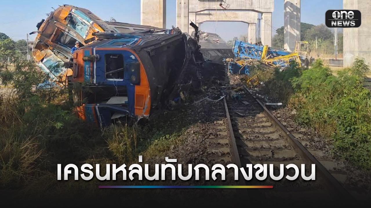 รถไฟดีเซลราง ปลายทางอุบลฯ ถูกเครนความเร็วสูงหล่นทับ เจ็บอื้อ