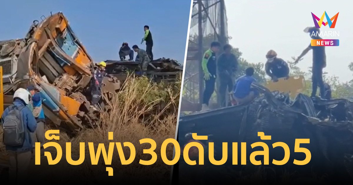 โศกนาฏกรรมสีคิ้ว! เครนรถไฟรางคู่ถล่มทับ "ขบวนด่วนพิเศษ 21" บาดเจ็บพุ่ง 30 ราย สังเวยชีวิตคาโบกี้ 5 ศพ ไฟลุกท่วม-คนติดภายในอื้อ กู้ภัยเร่งระดมช่วยด่วน