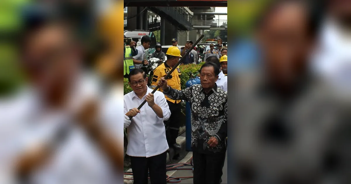 Pemerintah Provinsi DKI Jakarta mulai membongkar tiang monorel yang mangkrak di Jalan HR Rasuna Said Jakarta Selatan, Rabu (14/01/2026).