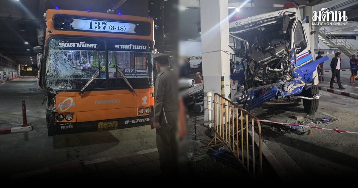 แจ้งข้อหาขับขี่ประมาท ‘โชเฟอร์รถเมล์ สาย 137’ หลังเบรกแตกพุ่งชนรถดับเพลิงกู้ภัยรฟม.