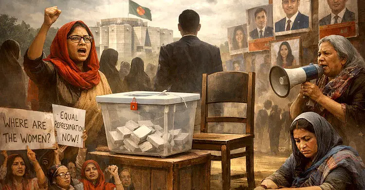 ১২ ফেব্রুয়ারি অনুষ্ঠিত হতে যাচ্ছে ত্রয়োদশ জাতীয় সংসদ নির্বাচন। দীর্ঘদিনের আকাঙ্ক্ষিত এই নির্বাচনে নারী প্রার্থীর সংখ্যা আনুপাতিক হারে মাত্র ৪ শতাংশ। একটি গুরুত্বপূর্ণ নির্বাচনে নারীদের এত কম অংশগ্রহণ, সমাজের একটি ভারসাম্যহীন চিত্রের প্রতিফলন বলে মনে করছেন নারী অধিকার কর্মী ও রাজনৈতিক বিশ্লেষকরা। নির্বাচন কমিশনের (ইসি) তথ্য বলছে, এবার মোট দুই হাজার ৫৬৮ জন প্রার্থী মনোনয়নপত্র জমা দিয়েছেন। তাদের মধ্যে নারী প্রার্থী মাত্র ১০৯ জন, যা মোট প্রার্থীর মাত্র চার শতাংশের সামান্য বেশি। অথচ দেশের মোট জনসংখ্যার প্রায় অর্ধেকই নারী। নারী অধিকারকর্মী ও রাজনৈতিক বিশ্লেষকরা মনে করছেন, একটি জাতীয় নির্বাচনে নারীদের এত কম অংশগ্রহণ সমাজে বিদ্যমান কাঠামোগত বৈষম্য ও পুরুষতান্ত্রিক রাজনৈতিক সংস্কৃতিরই প্রতিফলন। তাদের আশঙ্কা, জাতীয় নির্বাচনে নারীর কম উপস্থিতি ভবিষ্যতে নারী অধিকার আদায়ের সংগ্রামকে আরও দুর্বল করে তুলবে। ‘অশনিসংকেত’ হিসেবে দেখছেন অধিকারকর্মীরা নারী অধিকারকর্মীরা বলছেন, জাতীয় নির্বাচনে মাত্র ৪ শতাংশ নারী প্রার্থী থাকা নারীর রাজনৈতিক ক্ষমতায়নের ক্ষেত্রে এক ধরনের অশনিসংকেত। রাজনীতিতে নারীর অংশগ্রহণ কম থাকলে নীতিনির্ধারণী পর্যায়েও নারীর কণ্ঠ আরও দুর্বল হবে। রাজনৈতিক দলগুলোর প্রতিশ্রুতি রক্ষা হয়নি গেলো সোমবার (১২ জানুয়ারি) ঢাকা রিপোর্টার্স ইউনিটির সাগর-রুনি মিলনায়তনে আয়োজিত সংবাদ সম্মেলনে নারী রাজনৈতিক অধিকার ফোরামের সদস্যরা অভিযোগ করেন, নারীদের রাজনৈতিক অংশগ্রহণ নিশ্চিত করতে রাজনৈতিক দলগুলো তাদের ন্যূনতম প্রতিশ্রুতিও রক্ষা করেনি। ঘোষিত ৫ শতাংশ নারী মনোনয়নের প্রতিশ্রুতি বাস্তবায়নে দলগুলো ব্যর্থ হয়েছে, যা নারী নেতৃত্বের প্রতি রাজনৈতিক দলগুলোর অনীহারই বহিঃপ্রকাশ। আরও পড়ুন: ৩০টির মতো রাজনৈতিক দলের কোনো নারী প্রার্থী নেইরাজনৈতিক দলগুলো কেন আলাদা নারী শাখা রাখবে? সংবাদ সম্মেলনে আরও বলা হয়, আসন্ন জাতীয় সংসদ নির্বাচনে প্রতিদ্বন্দ্বী ৫১টি রাজনৈতিক দলের মধ্যে ৩০টিরই কোনো নারী প্রার্থী নেই, যা পরিস্থিতির ভয়াবহতাকে আরও স্পষ্ট করে। জুলাই জাতীয় সনদ ও বাস্তবতার ফারাক ‘নারী প্রার্থী মনোনয়নের সংকট: রাজনৈতিক দলগুলোর প্রতিশ্রুতি ও বাস্তবায়নের ব্যবধান এবং নির্বাচন কমিশনের জবাবদিহি’ শিরোনামে আয়োজিত এই সংবাদ সম্মেলনে বক্তারা বলেন, জাতীয় ঐকমত্য কমিশন প্রণীত জুলাই জাতীয় সনদ-২০২৫-এর ধারা ২২(খ)-(ঘ) অনুযায়ী, প্রতিটি রাজনৈতিক দলকে এবারের সংসদীয় নির্বাচনে ন্যূনতম ৫ শতাংশ নারী প্রার্থী মনোনয়ন দিতে হবে। পরবর্তী নির্বাচনগুলোতে তা ধাপে ধাপে বাড়িয়ে ৩৩ শতাংশে উন্নীত করার লক্ষ্য নির্ধারণ করা হয়। তবে বাস্ত