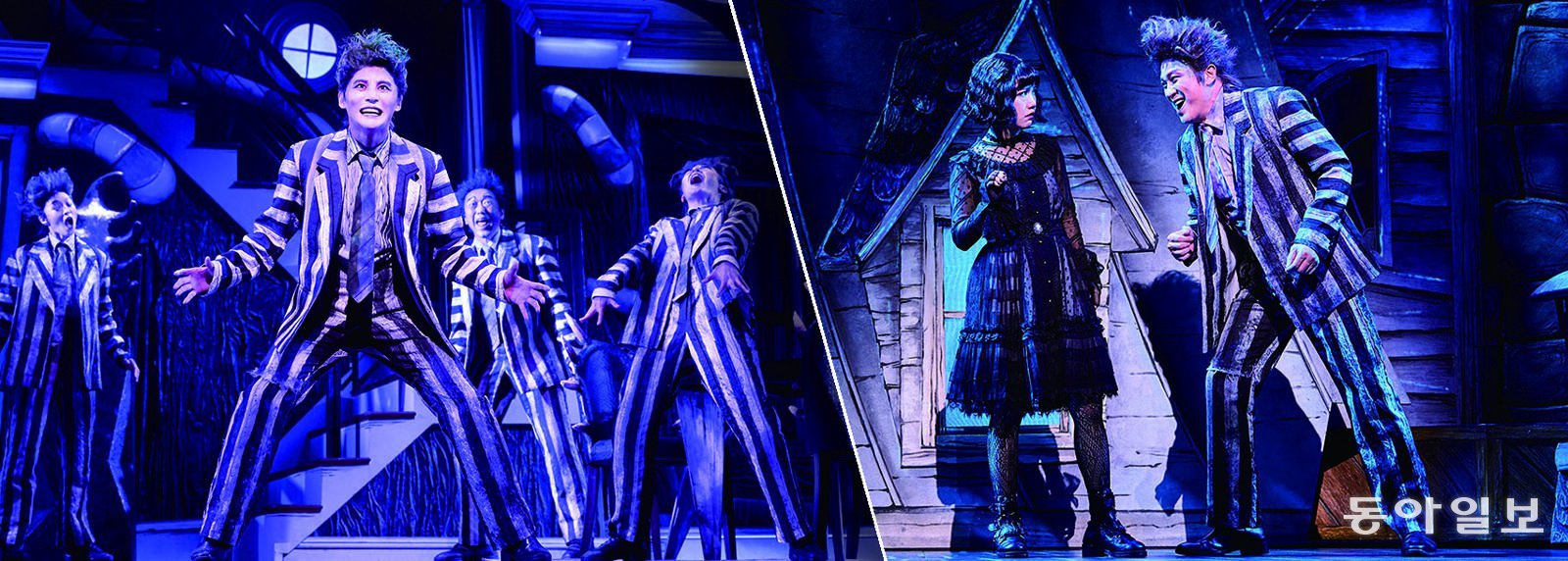 >> 뮤지컬 비틀쥬스 악동 유령이 벌이는 기괴하고 유쾌한 혼란100억 년간 이승과 저승 사이에 낀 비틀쥬스는 인간에게 보이지 않는다. 외로움에 몸부림쳐도 어쩔 수 없다. 저승법에 따르면 산 사람이 비틀쥬스의 이름을 세 번 부르면 그를 볼 수 있다. 비틀쥬스는 유령을 볼 수 있는 소녀 리디아, 동시에 사망한 부부 바바라와 아담을 만나자 이들을 이용해 사람들이 자신을 보게 만들려 하는데…. 팀 버튼 감독의 동명 영화(1988년)를 뮤지컬로 만들었다. 2019년 미국 뉴욕 브로드웨이에서 초연됐다. 국내 공연은 2021년에 이어 이번이 두 번째다.기괴하면서도 엉뚱 발랄한 인물들이 자아내는 통통 튀는 이야기가 만화 같은 무대와 딱 맞는 톱니바퀴처럼 어우러진다. 악동 유령 비틀쥬스의 혼란스러운 정서를 실감나게 보여주는 노래와 춤, 갑자기 튀어나오는 기이한 존재들, 시시각각 변하는 무대가 눈을 뗄 수 없게 만든다. 거칠 것 없어 보이지만 마음 깊은 곳에 상처를 지닌 비틀쥬스, 겁 없고 당차지