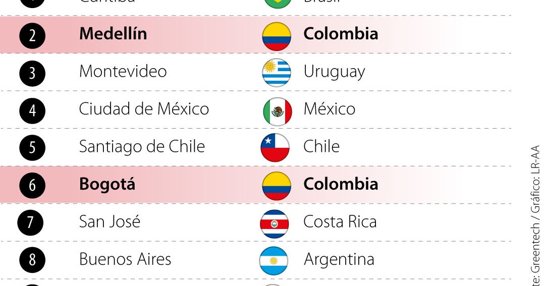 En el listado aparecen otras ciudades como Curitiba, Montevideo, Ciudad de México, Santiago de Chile, San José y Buenos Aires