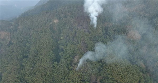 Taipei, Jan. 14 (CNA) A forest fire that broke out in Yunlin County's Gukeng Township early Monday has been brought under control but continued to burn sporadically Wednesday as firefighting teams struggled with the area's harsh terrain and lack of water.